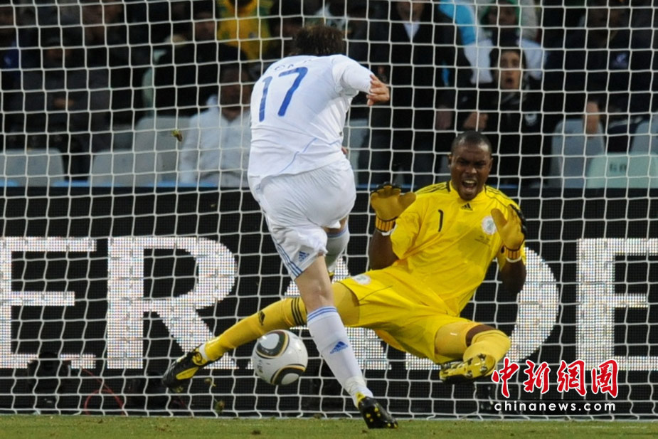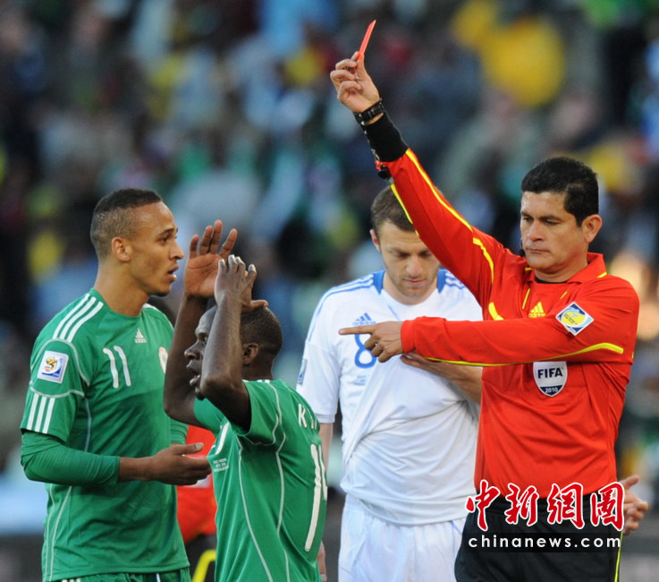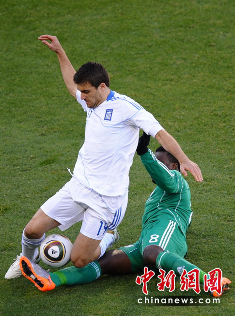 6月17日,南非世界杯B組第二輪比賽打響,由歐洲勁旅希臘在布隆方丹的自由洲球場(chǎng)迎戰(zhàn)非洲雄鷹尼日利亞。上班時(shí)尼日利亞任意球率先破門(mén),但此后被紅牌罰下一人,希臘隊(duì)隨即抓住機(jī)會(huì),在上下半場(chǎng)各入一球,以2-1逆轉(zhuǎn)擊敗尼日利亞隊(duì)。