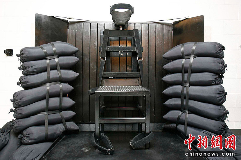 6月18日,美國(guó)猶他州臭名昭著的“殺人魔”魯尼·李·加德納被執(zhí)行槍決,他是14年來(lái)美國(guó)第一名被槍決的死刑犯,此時(shí)距離他被判處死刑已經(jīng)過去25年。圖片為加德納被槍決的行刑室。