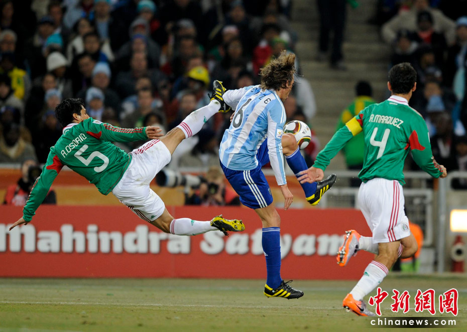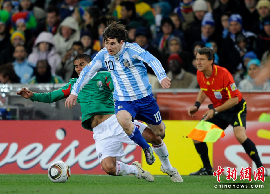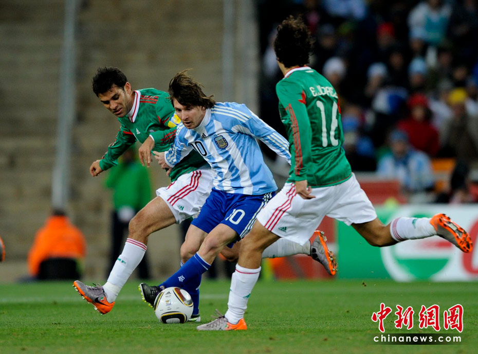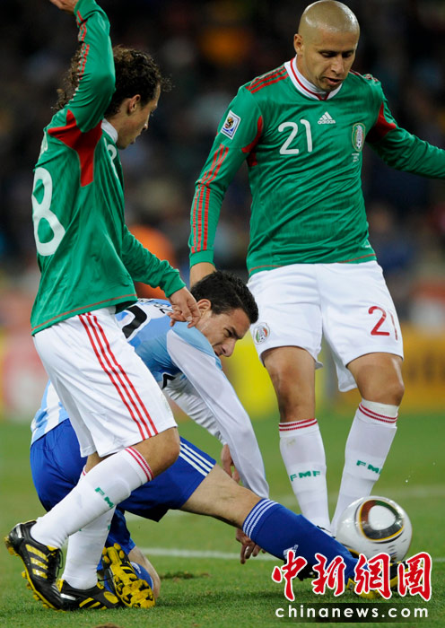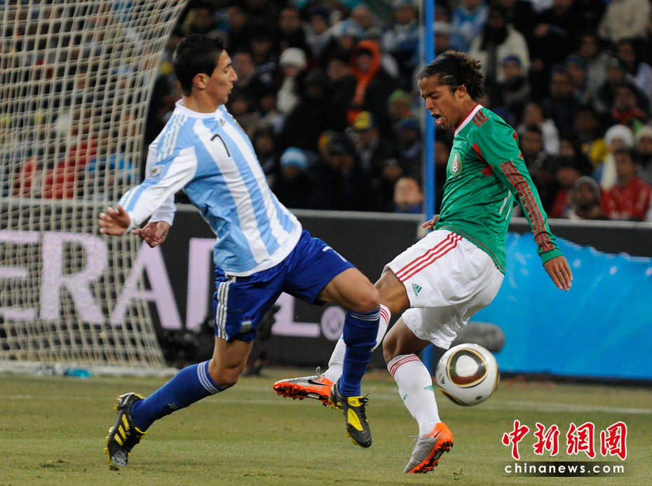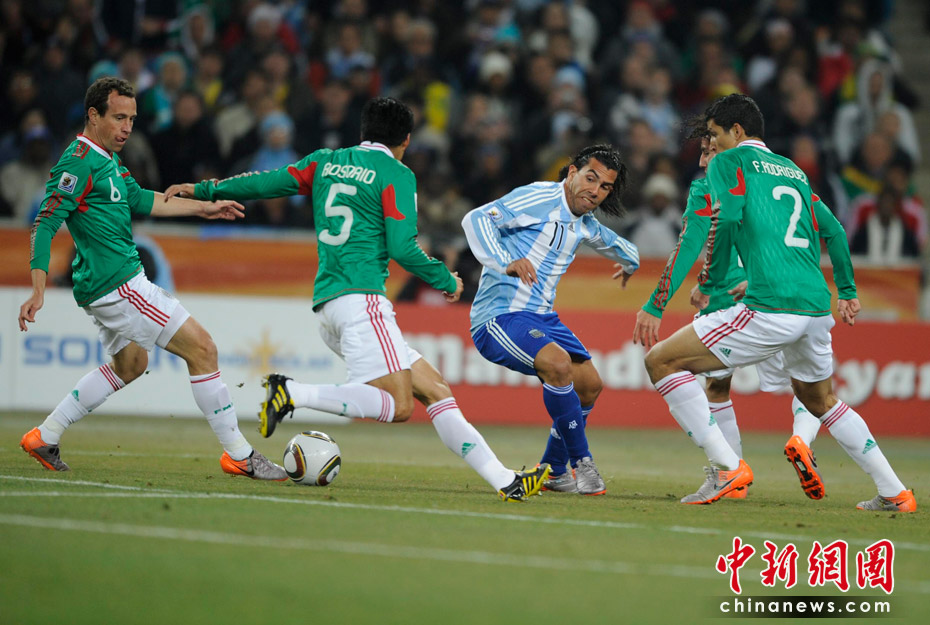 北京時間6月28日凌晨2:30,南非世界杯1/8決賽再賽一場,阿根廷隊在約翰內(nèi)斯堡的足球城球場迎來了墨西哥隊。憑借特維斯一個明顯越位進(jìn)球首開紀(jì)錄,隨后伊瓜因和特維斯各進(jìn)一球,以3-1擊敗墨西哥,晉級八強。 中新社記者 廖攀 攝