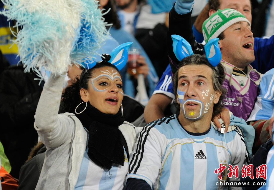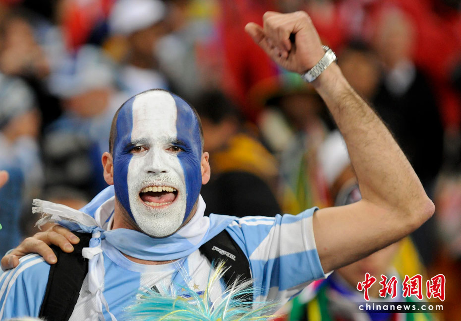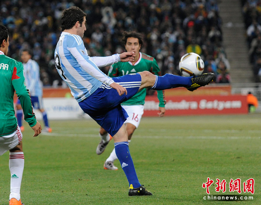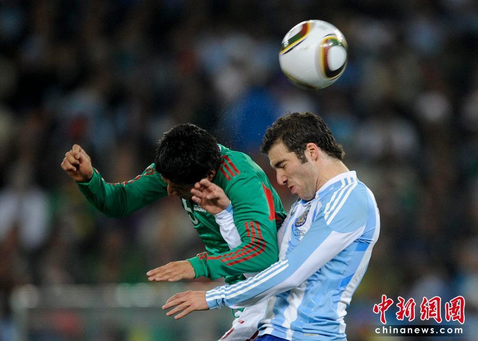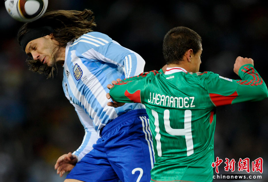 北京時間6月28日凌晨2:30,南非世界杯1/8決賽再賽一場,阿根廷隊在約翰內(nèi)斯堡的足球城球場迎來了墨西哥隊。憑借特維斯一個明顯越位進(jìn)球首開紀(jì)錄,隨后伊瓜因和特維斯各進(jìn)一球,以3-1擊敗墨西哥,晉級八強。 中新社記者 廖攀 攝