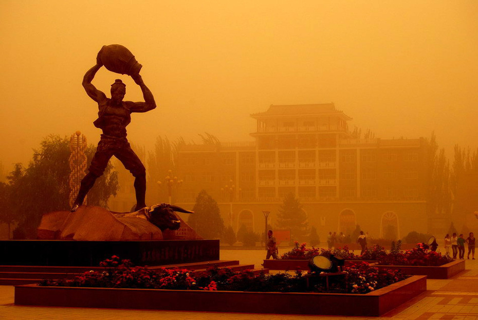 6月27日,甘肅民勤城區(qū)遭到沙塵襲擊。當(dāng)日下午4時(shí)左右,甘肅省武威市民勤縣又遭沙塵暴襲擊,黃黑的沙塵迅速籠罩整個(gè)縣城,能見度大幅降低。今年4月24日甘肅民勤曾遭特大沙塵暴襲擊。 圖片來(lái)源:新華網(wǎng) 李軍 攝