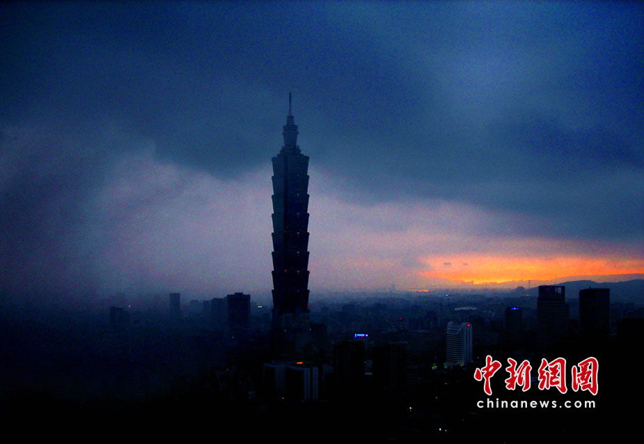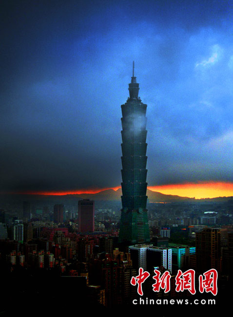 6月28日傍晚,臺(tái)北市一陣大雨后,從象山俯瞰市區(qū),101摩天大樓聳入云霄,后山紅云如火,景觀如畫。美麗的臺(tái)北市地處盆地,氣候多變,夏季的城市景色也時(shí)常變幻莫測。中新社記者 宋吉河攝