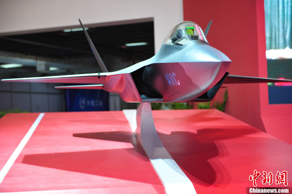 11月13日上午,第九屆中國國際航空航天博覽會在廣東珠海開幕,一架中國先進戰(zhàn)斗機概念模型在中航工業(yè)展臺亮相,從外形上看,與前不久成功試飛的殲31相似,備受關(guān)注。中新社發(fā) 柯小軍 攝