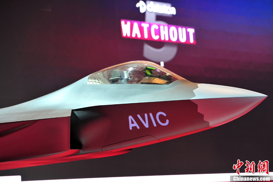 11月13日上午,第九屆中國國際航空航天博覽會(huì)在廣東珠海開幕,一架中國先進(jìn)戰(zhàn)斗機(jī)概念模型在中航工業(yè)展臺(tái)亮相,備受關(guān)注。中新社發(fā) 陳文 攝