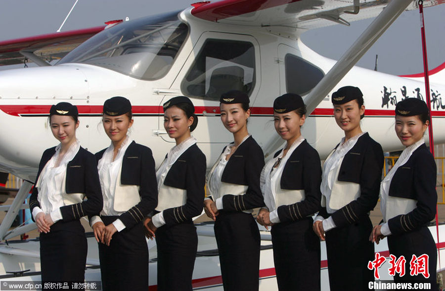2012年11月13日,廣東省珠海市,瀚星通航的準女飛行員和飛機亮相航展。圖片來源:CFP視覺中國