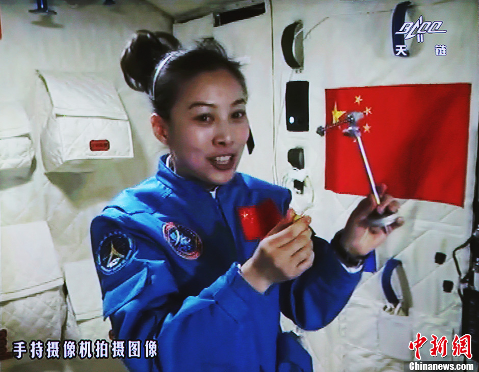 6月20日10時(shí)許,神舟十號(hào)航天員在天宮一號(hào)開展基礎(chǔ)物理實(shí)驗(yàn),為青少年進(jìn)行中國首次太空授課。圖為王亞平講授太空失重提供條件下的單擺演示。中新社發(fā) 秦憲安 攝