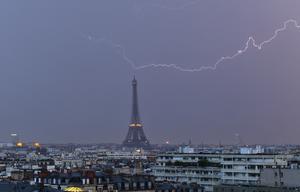 法國埃菲爾鐵塔被閃電“擊中”