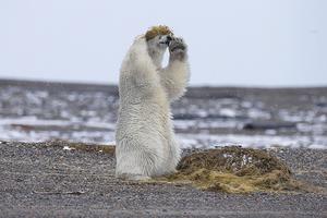 北極熊頭戴海藻當假發(fā)