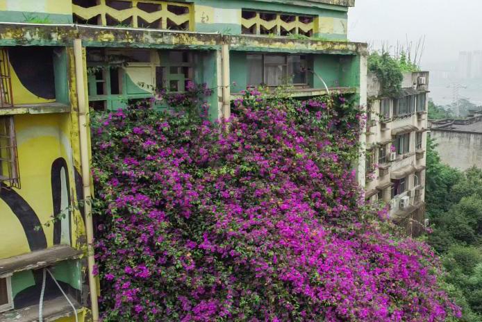 重慶一居民樓現(xiàn)近30米三角梅“花瀑”