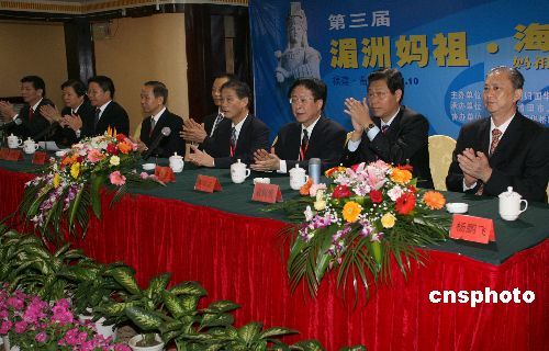 第三屆湄洲媽祖·海峽論壇10月30日在媽祖故鄉(xiāng)福建莆田開幕。全國政協(xié)副主席張克輝發(fā)來賀信,中國僑聯(lián)主席林兆樞出席開幕式。來自中國、菲律賓、日本、澳大利亞、新西蘭、馬來西亞、印尼、新加坡、巴拉圭、南非、荷蘭、臺灣、香港等13個國家和地區(qū)的一百多名僑領以及媽祖文化專家、學者,將圍繞“媽祖文化與華人華僑”主題進行為期兩天的研討交流。出席開幕式的還有福建省政協(xié)副主席、統(tǒng)戰(zhàn)部長張燮飛等。中新社發(fā) 張勤 攝