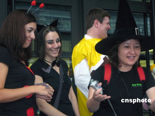 西方社會傳統(tǒng)的萬圣節(jié)將至,10月30日,在臺北市著名百貨公司新光三越店門口,時尚一族提前秀起了“鬼臉”。中新社發(fā) 王林 攝