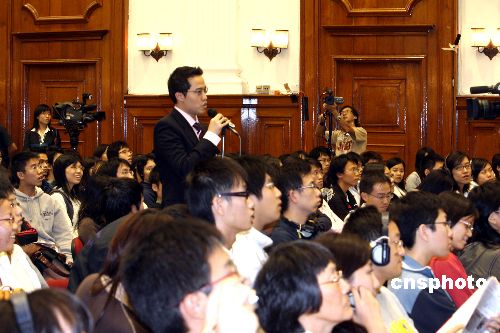 十一月八日晚,香港立法會港島區(qū)補選辯論會在香港大學(xué)校園舉行,八名候選人齊齊參加,向公眾介紹政鋼,并接受公眾提問。該活動由香港大學(xué)學(xué)生會及該學(xué)生會社會科學(xué)學(xué)會政治及公共行政學(xué)會舉辦。圖為學(xué)生向候選人提問。中新社發(fā) 王麗南 攝