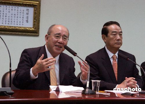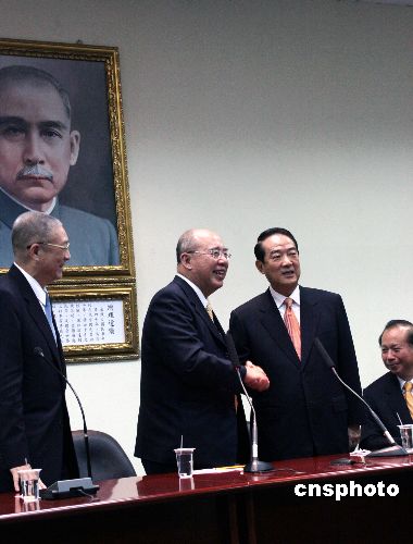 11月14日,中國(guó)國(guó)民黨主席吳伯雄和親民黨主席宋楚瑜在臺(tái)北一起舉行記者會(huì),公布列國(guó)民黨34席不分區(qū)“立委”提名名單的4名親民黨成員。親民黨另有6位成員獲國(guó)親推薦,以國(guó)民黨名義參選區(qū)域“立委”選舉。中新社發(fā) 黃少華 攝