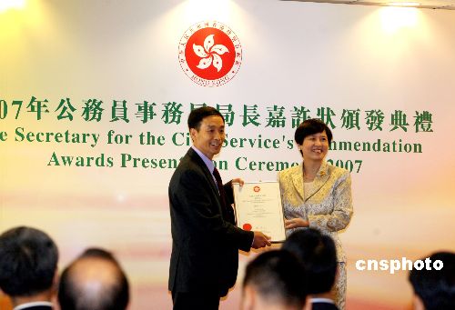 十一月十五日,香港舉行公務員事務局局長嘉許狀頒發(fā)典禮,為來自三十八個局及部門的七十五名優(yōu)秀公務員頒發(fā)嘉許狀,表揚他們的杰出表現(xiàn)。中新社發(fā) 王麗南 攝