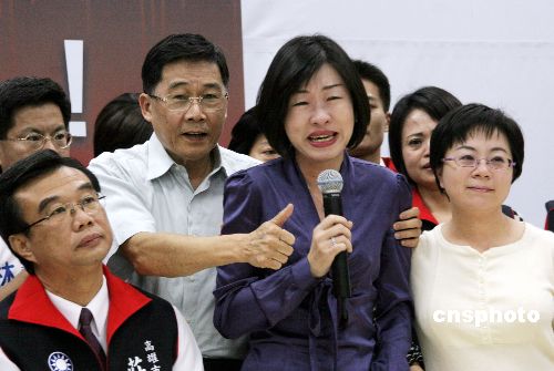 11月16日,高雄市長選舉官司在當?shù)囟䦟彾ㄗ。代表中國國民黨的候選人黃俊英(中)在選舉無效和當選無效兩項訴訟中均遭判敗訴。民進黨的陳菊在去年12月9日勝出擔任市長后,今次獲承辦法官支持繼續(xù)擔任市長。今年6月15日,該官司一審曾判,選舉有效,但陳菊當選無效。圖為在競選總部記者會上,辯護律師傷心落淚,黃俊英趨前安慰。中新社發(fā) 黃少華 攝
