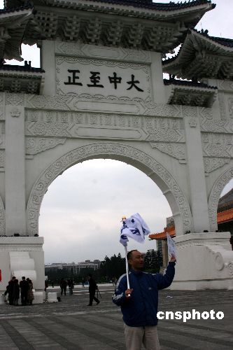 臺北“中正紀念堂”是否改名引發(fā)的爭議,延伸至堂前廣場上的“大中至正”牌匾。十二月四日下午,臺北市民自發(fā)前往“中正紀念堂”,抗議臺灣當局有關部門做出將要拆除“大中至正”牌匾的決定。中新社發(fā) 陳國華 攝