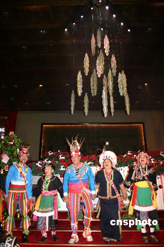 十二月五日下午,古色古香的臺北圓山飯店舉行圣誕點燈儀式,并請來原住民作為大地的代言人,從大地采光,點燃圣誕之燈。據(jù)了解,今年圓山飯店的圣誕樹造型的燈使用環(huán)保材料,圣誕之后,仍可用作日常的照明。中新社發(fā) 陳國華 攝