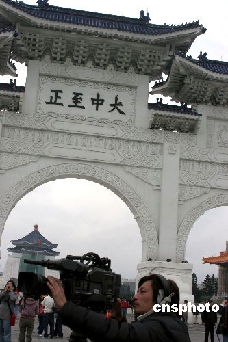 十二月五日,因臺(tái)灣當(dāng)局執(zhí)意拆除臺(tái)北“中正紀(jì)念堂”牌樓“大中至正”四字引發(fā)的風(fēng)波升級(jí)。臺(tái)灣媒體大陣仗在現(xiàn)場(chǎng)采訪,僅攝像三角架就擺放了數(shù)十個(gè)。圖為一名電子媒體的記者在拍攝民眾抗議的場(chǎng)面。中新社發(fā) 董會(huì)峰 攝