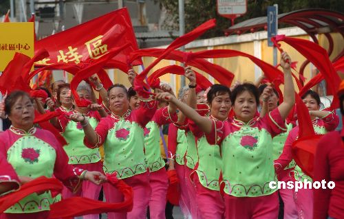 十二月二十日,澳門北區(qū)社團組織了慶;貧w祖國八周年大巡游,兩千余名市民沿街載歌載午,歡慶澳門明天會更美好。 中新社發(fā) 史利 攝