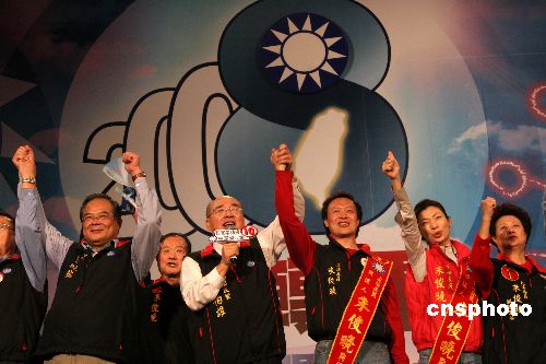 1月11日晚,中國(guó)國(guó)民黨在臺(tái)北縣三重市綜合運(yùn)動(dòng)場(chǎng)舉辦“2008臺(tái)灣轉(zhuǎn)運(yùn)之夜”活動(dòng),為國(guó)民黨參加本屆“立委”選舉作最后沖刺。中新社發(fā) 孫自法 攝