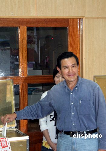 一月十二日是臺灣第七屆“立委”選舉日,當(dāng)天下午,中國國民黨臺灣二00八年“大選”參選人馬英九前往投票場所投票。中新社發(fā) 孫自法 攝