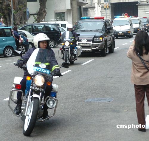 押解歐文龍親屬的囚車(白色)在警察的護(hù)衛(wèi)下駛?cè)氚拈T初級(jí)法院。