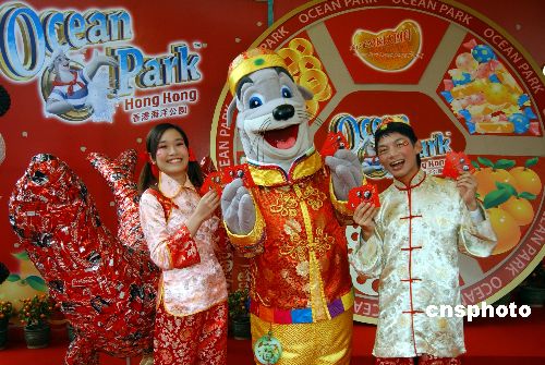 一月十七日,香港海洋公園吉祥物威威獅令以新春唐衫裝扮大派新年利是,宣傳賀歲活動。當日,該公園宣布由二月二日至十七日農歷期間舉辦“大團拜”,上演“冰上百老匯”、“舞龍大匯演”等迎鼠接;顒。中新社發(fā) 蔡蔓莉 攝