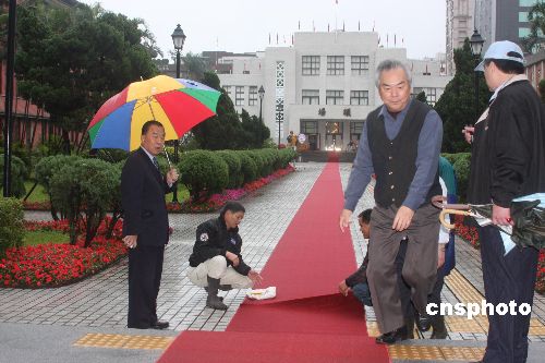 2月1日是臺灣第七屆“立法委員”辦理報(bào)到并宣誓就職的日子。清晨,臺灣“立法院”的工作人員冒雨從大門口開始鋪設(shè)通到“議場”的、長達(dá)百米的紅地毯。中新社發(fā) 耿軍 攝