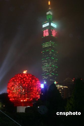 2月中旬,2008臺(tái)北花燈節(jié)在臺(tái)北市熱鬧舉行,今年主題為“囍迎曙光耀繁城”。主燈(圖中紅色圓燈)為金鼠娶親,由一百只造型卡通的老鼠組成,主燈與遠(yuǎn)處臺(tái)北一0一大樓交相輝映。中新社發(fā) 徐長(zhǎng)安 攝