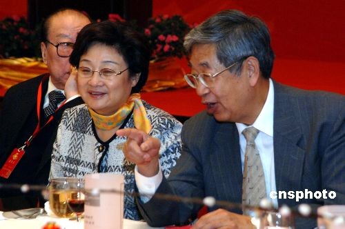二月十八日晚,中國全國人大常委會副委員長許嘉璐(右一)、國務院僑務辦公室主任李海峰(右二)在福州出席“海峽西岸鬧元宵,全球華人盼團圓”活動歡迎晚宴。該活動由國務院僑務辦公室、福建省人民政府、海峽兩岸關(guān)系協(xié)會聯(lián)合主辦,來自四十多個國家和地區(qū)的海外華僑華人及港澳臺同胞代表到福州歡度元宵佳節(jié)。中新社發(fā) 王東明 攝