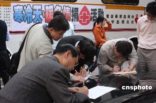 春節(jié)前后,臺灣持續(xù)降溫、降雨,天氣冷颼颼,民眾減少出門,學(xué)生亦放寒假,臺灣各地捐血中心血庫都鬧血荒,安全庫存量應(yīng)該要有一個星期,但血庫大多只有正常庫存量的四分之一。二月二十一日,中國國民黨發(fā)起捐血活動,希望緩解血荒。中新社發(fā) 耿軍 攝