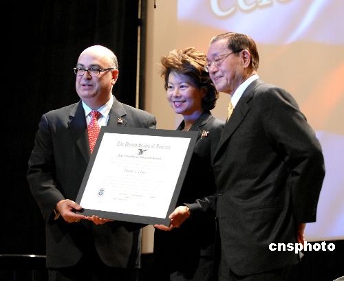 圖:美國聯(lián)邦勞工部長趙小蘭獲頒杰出移民獎