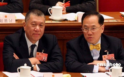 3月5日上午,十一屆全國人大一次會議在北京開幕。香港特首曾蔭權和澳門特首何厚鏵在主席臺上。中新社發(fā) 張宇 攝