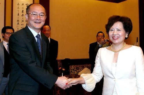 3月21日晚,國務(wù)院僑務(wù)辦公室趙陽副主任在釣魚臺國賓館宴請中國華文教育基金會(huì)香港嘉賓團(tuán)一行,并在宴請之前與香港嘉賓進(jìn)行了親切座談。香港嘉賓團(tuán)由香港昌泰國際集團(tuán)有限公司董事總經(jīng)理鄧慕蓮小姐帶隊(duì),此次專程來北京與中國華文教育基金會(huì)聯(lián)誼。團(tuán)長鄧慕蓮小姐熱心公益,關(guān)注華文教育事業(yè),于今年初向基金會(huì)捐贈(zèng)五十四萬港幣。嘉賓團(tuán)成員包括香港商界、法律界以及演藝界人士。圖為國務(wù)院僑務(wù)辦公室趙陽副主任與香港昌泰國際集團(tuán)有限公司董事總經(jīng)理鄧慕蓮小姐(右)握手交談。中新社發(fā) 張勤 攝
