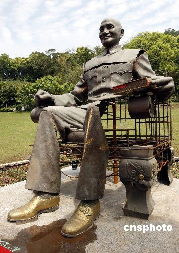 臺灣最大的蔣中正銅像被安放在臺灣桃園縣慈湖。位于高雄市的蔣公銅像被卸成兩百多塊后,最近由桃園縣政府委托藝術家重組完成。中新社發(fā) 杜洋 攝
