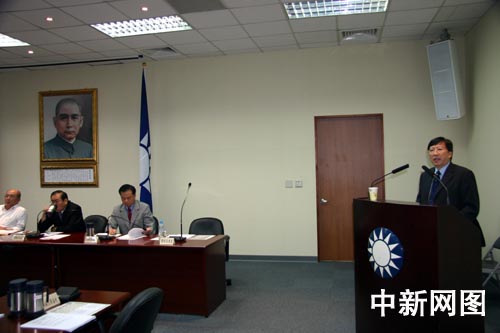 臺灣地區(qū)當(dāng)選領(lǐng)導(dǎo)人馬英九14日在面對港澳媒體的記者會上證實,將由東吳大學(xué)校長劉兆玄出任“行政院長”。劉兆玄1943年5月出生,湖南省衡陽縣人。1965年臺灣大學(xué)化學(xué)系畢業(yè),曾任臺灣當(dāng)局“交通部”部長、“行政院副院長”。2004年出任東吳大學(xué)校長,現(xiàn)任國民黨中常委。圖為2007年6月,劉兆玄在國民黨中常會上就經(jīng)貿(mào)問題作演講。中新社記者 耿軍 攝