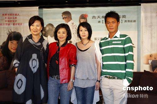 4月23日,張艾嘉(左二)帶著奶茶劉若英(右二)、古天樂,以及片中客串的港星陶敏明在臺北為愛情結晶喜劇《一個好爸爸》造勢。本片由成龍親自監(jiān)制,是張艾嘉繼《20.30.40》后籌備三年的執(zhí)導力作。她在此片突破常規(guī)染指黑幫的花花世界,用豐富和幽默真摯情感打動觀眾,成為導演生涯中最有創(chuàng)作力一次。男女主角古天樂、劉若英飾演一對經(jīng)歷廿年愛情試煉的夫妻,激情有默契,雋永而清新!兑粋好爸爸》將于4月25日在臺灣公映。中新社發(fā) 杜洋 攝