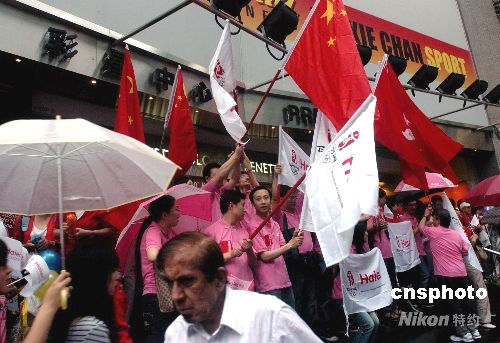 圖:香港市民冒雨歡迎奧運(yùn)圣火