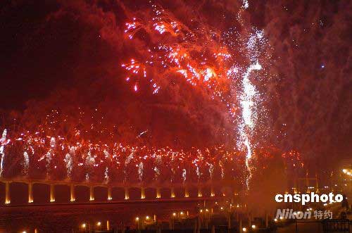 圖:璀璨煙花喜賀澳門奧運(yùn)火炬接力成功