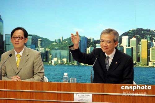 香港奧運馬術(shù)公司行政總裁林煥光(右)和香港中旅社發(fā)言人吳熹安六月十日舉行新聞簡報會,宣布香港再獲北京奧組委分配六萬張奧運馬術(shù)門票,將于六月十二日開售。香港中旅社將受委托作為門票銷售的票務(wù)代理。中新社發(fā) 黎金良 攝