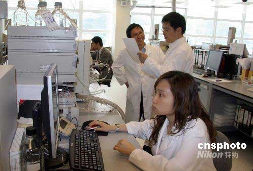 圖為香港賽馬會賽事化驗所工作人員在進行樣本檢驗分析。北京奧運會馬術比賽將于八月九日至二十一日在香港舉行,該項賽事的馬匹藥檢化驗工作由實力雄厚、經驗豐富的香港賽馬會承擔。香港賽馬會賽事化驗所每年檢驗超過一萬八千個正式樣本,是國際馬術運動聯合會授予的四個“確證化驗所”之一。中新社發(fā) 孫自法 攝