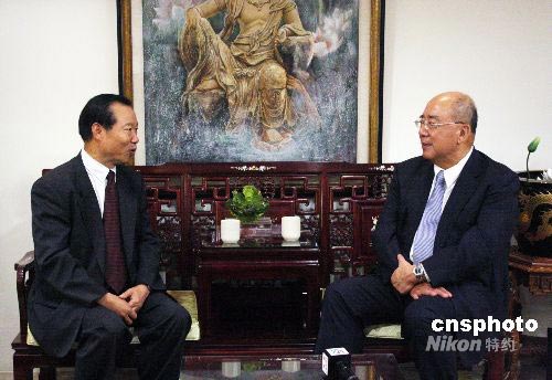7月8日,海峽兩岸關系協(xié)會副會長王在希在臺北與中國國民黨主席吳伯雄會見。吳伯雄表示,7月4日開始的兩岸周末包機以及大陸居民赴臺旅游,都很重要。希望彼此的交流有助于促進兩岸的了解和友誼。中新社發(fā) 黃少華 攝