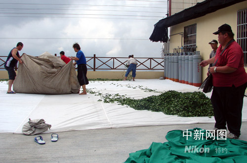 九月十二日“森拉克”臺(tái)風(fēng)即將來(lái)臨,臺(tái)灣阿里山上的茶農(nóng)搶時(shí)間晾曬高山茶。曾福志 攝