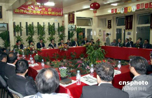 正在巴黎訪問的中國國務(wù)院僑辦主任李海峰和法國僑學(xué)界座談,聽取他們對僑務(wù)工作的意見和建議。