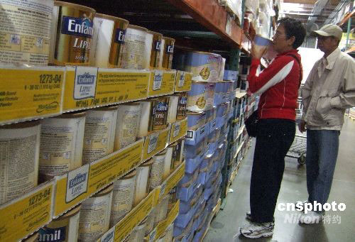 9月23日,幾位華人顧客在洛杉磯附近的一個(gè)大型超市選購(gòu)美國(guó)產(chǎn)嬰兒奶粉。三鹿嬰兒奶粉事件在洛杉磯華人社區(qū)產(chǎn)生極大反響,應(yīng)國(guó)內(nèi)親友之托,許多洛杉磯華人華僑紛紛購(gòu)買美國(guó)產(chǎn)嬰兒奶粉郵寄或捎帶回國(guó)。中新社發(fā) 張煒 攝