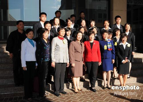 由北京華明偉業(yè)國際文化交流中心組織的“中國青少年風采之旅--2008美國行”十六位中國“小使者”,當?shù)貢r間10月2日下午在華盛頓美國勞工部采訪了美國商務(wù)部少數(shù)族裔發(fā)展署副署長董繼玲女士(前排右三)和勞工部助理副部長安娜·許女士(前排右四),同學(xué)們對這兩位在美政界成功華裔女性的經(jīng)歷和思想非常感興趣。圖為采訪完畢在勞工部合影。中新社發(fā) 邱江波 攝