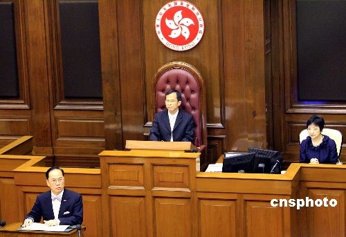 十月十五日,香港行政長官曾蔭權(quán),向立法會發(fā)表二零零八至零九年施政報告。中新社發(fā) 張勤 攝