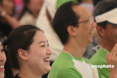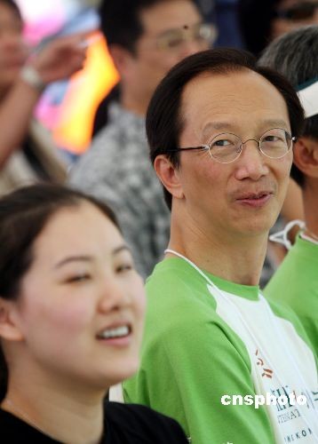 十月二十五日,國際小母牛香港分會董事局主席梁錦松、小母牛組織愛心大使伏明霞在香港維多利亞公園出席小母牛“競步善行二零零八”慈善比賽,為四川災(zāi)區(qū)重建工作籌款。中新社發(fā) 武仲林 攝