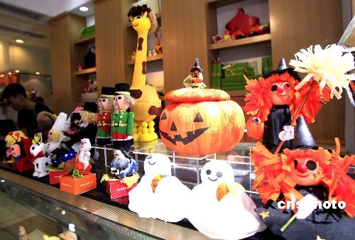 十月二十八日,香港“萬圣節(jié)”氣氛越來越濃,商場內(nèi)各式“鬼節(jié)”飾品,吸引過路人的目光。中新社發(fā) 張勤 攝