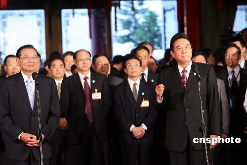 十一月三日,海峽兩岸關(guān)系協(xié)會會長陳云林乘專機抵達臺北,在海基會董事長江丙坤歡迎下入住圓山飯店。陳云林在飯店發(fā)表抵臺后首次正式談話,陳云林致詞時說,這是他第一次踏上臺灣土地,能夠如此近距離接觸可敬的臺灣鄉(xiāng)親,心情非常激動。 陳云林將在四日上午與江丙坤舉行歷史性的臺北會談及簽署協(xié)定。 中新社發(fā) 洪少葵 攝